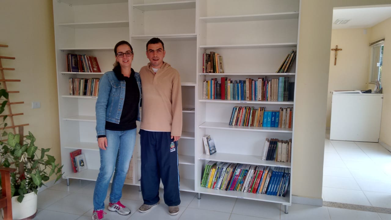 O sonho de ter uma biblioteca na Comunidade Bethânia, recanto São João Batista (SC), se tornou realidade. O projeto foi idealizado por dois filhos, Priscila Pereira e Gabriel Joffe desde que entraram na instituição, em novembro de 2017. O espaço foi montado em agosto, em uma sala da recepção com prateleiras e livros cadastrados por ordem alfabética.