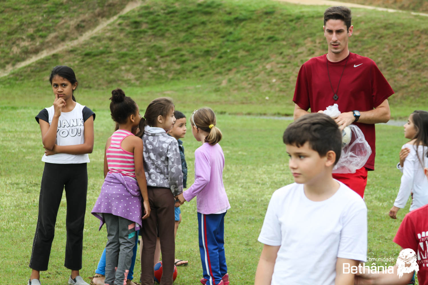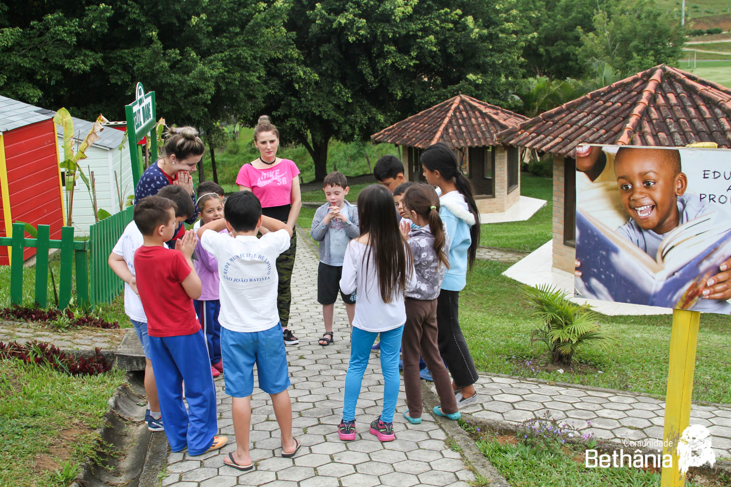 Enquanto os professores aproveitavam o momento, os aspirantes de Bethânia assumiram os trabalhos na escola. As meninas foram para as salas da creche e os meninos, juntaram os alunos do ensino fundamental e foram para o campo fazer atividades recreativas.