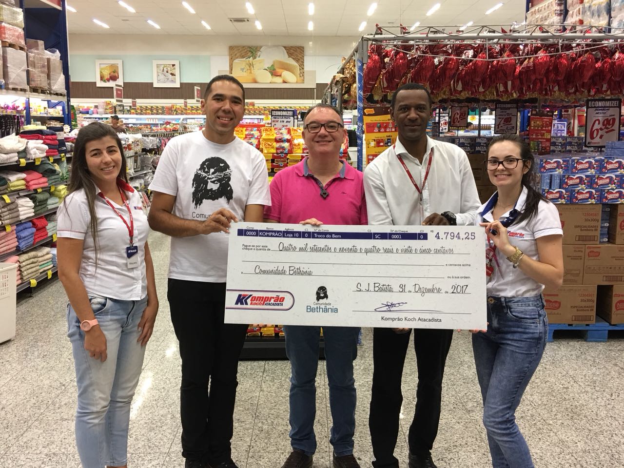 A Comunidade Bethânia recebeu do Komprão Koch Atacadista, de São João Batista, o valor de R$ 4794,25, referente à campanha Troco Solidário. Esta foi a segunda vez que a comunidade é beneficiada por meio do programa.