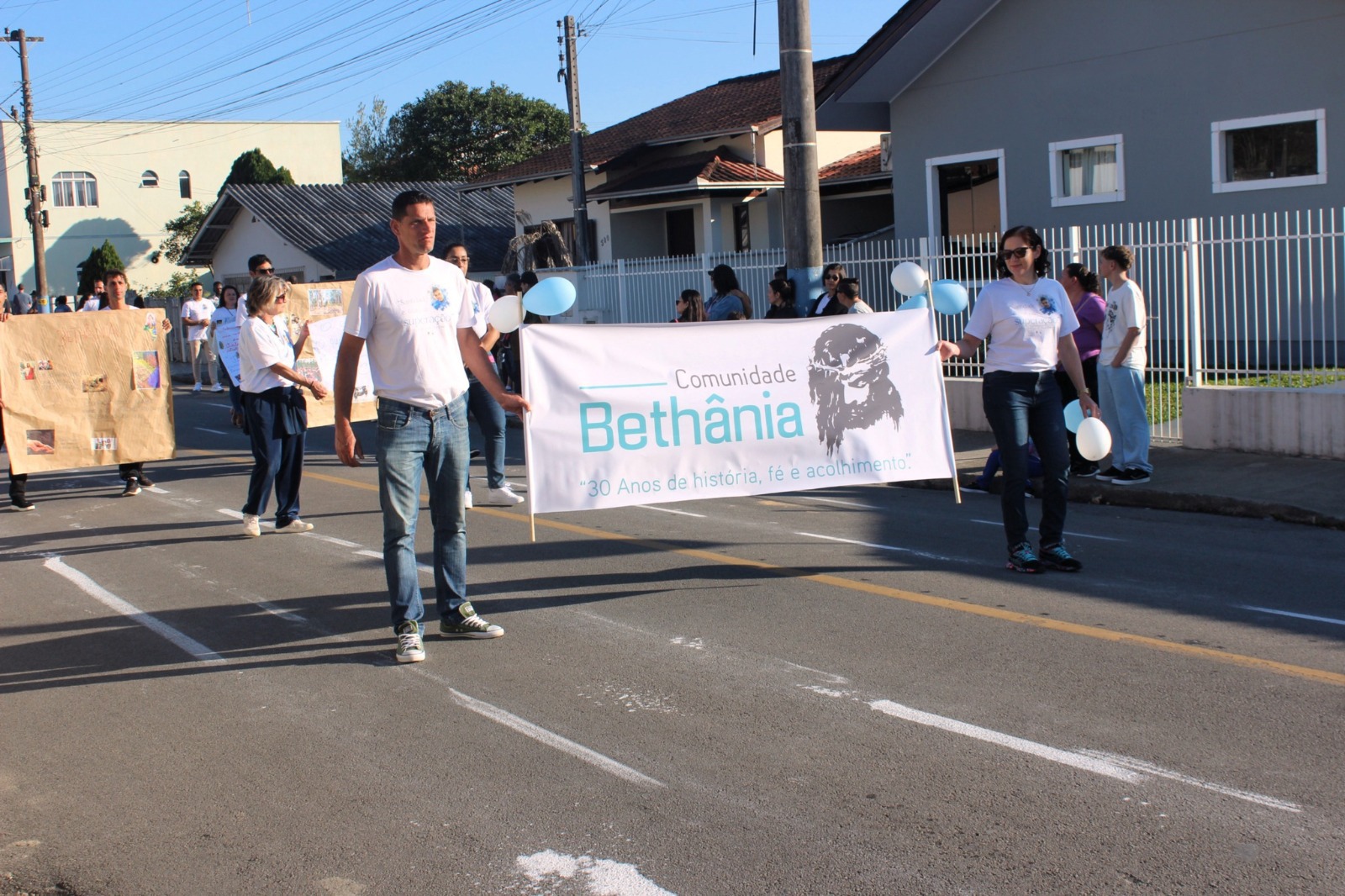 A Comunidade Bethânia marcou presença com filhos, consagrados e colaboradores, levando às ruas não apenas uma homenagem, mas um testemunho vivo do legado do Servo de Deus Padre Léo. Durante o desfile, a Comunidade apresentou elementos que retratam sua caminhada de fé, restauração e evangelização, reforçando os laços profundos com a cidade que a acolheu desde sua fundação, em 1995.