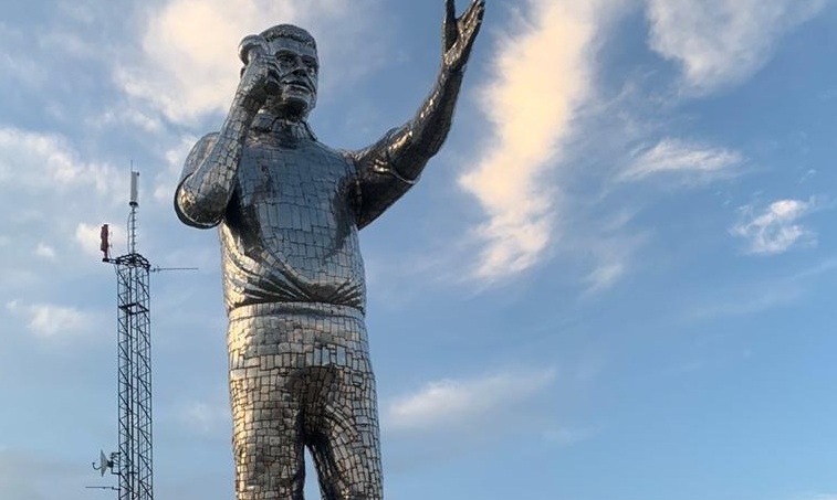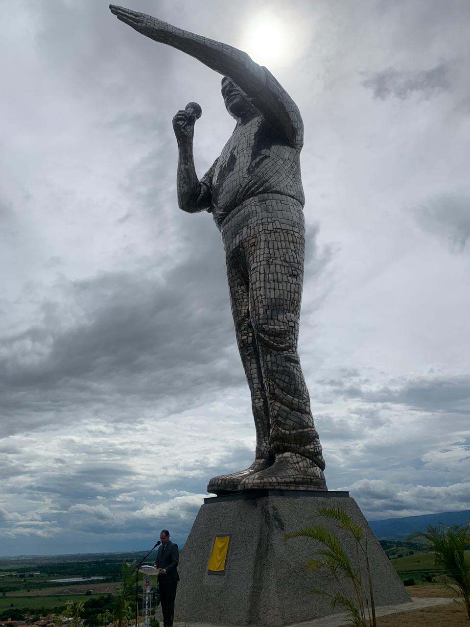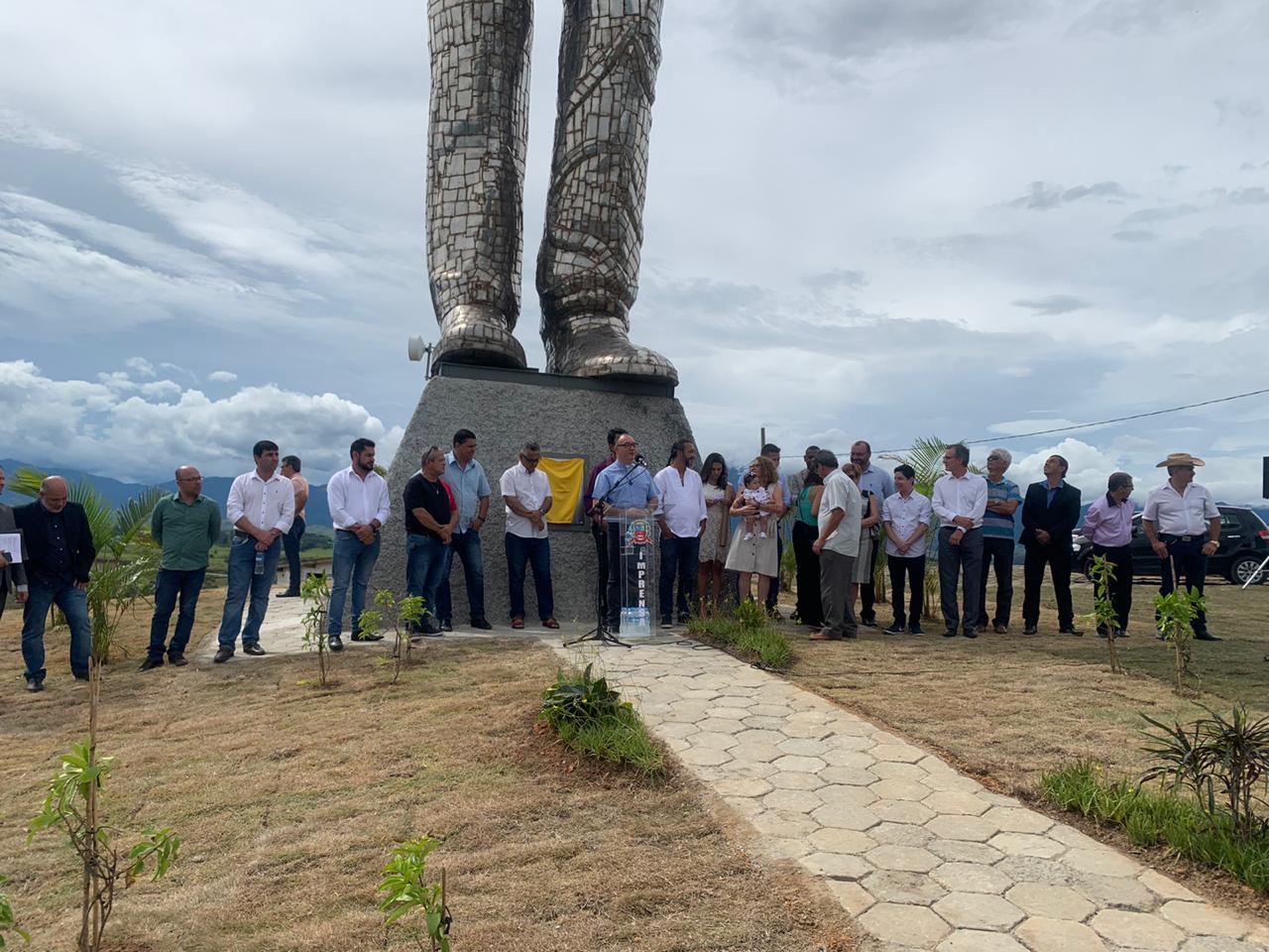 A obra é do artista Gilmar Pinna feita com 20 toneladas aço inox e estrutura de ferro, com iniciativa da Prefeitura de Cachoeira Paulista, no Vale do Paraíba e da Secretaria de Turismo do Governo do Estado de São Paulo por meio convênio de fomento ao turismo. De acordo com Gilmar Pinna, a instalação da obra foi concluída no fim de outubro e toda montagem foi acompanhada pelo artista.