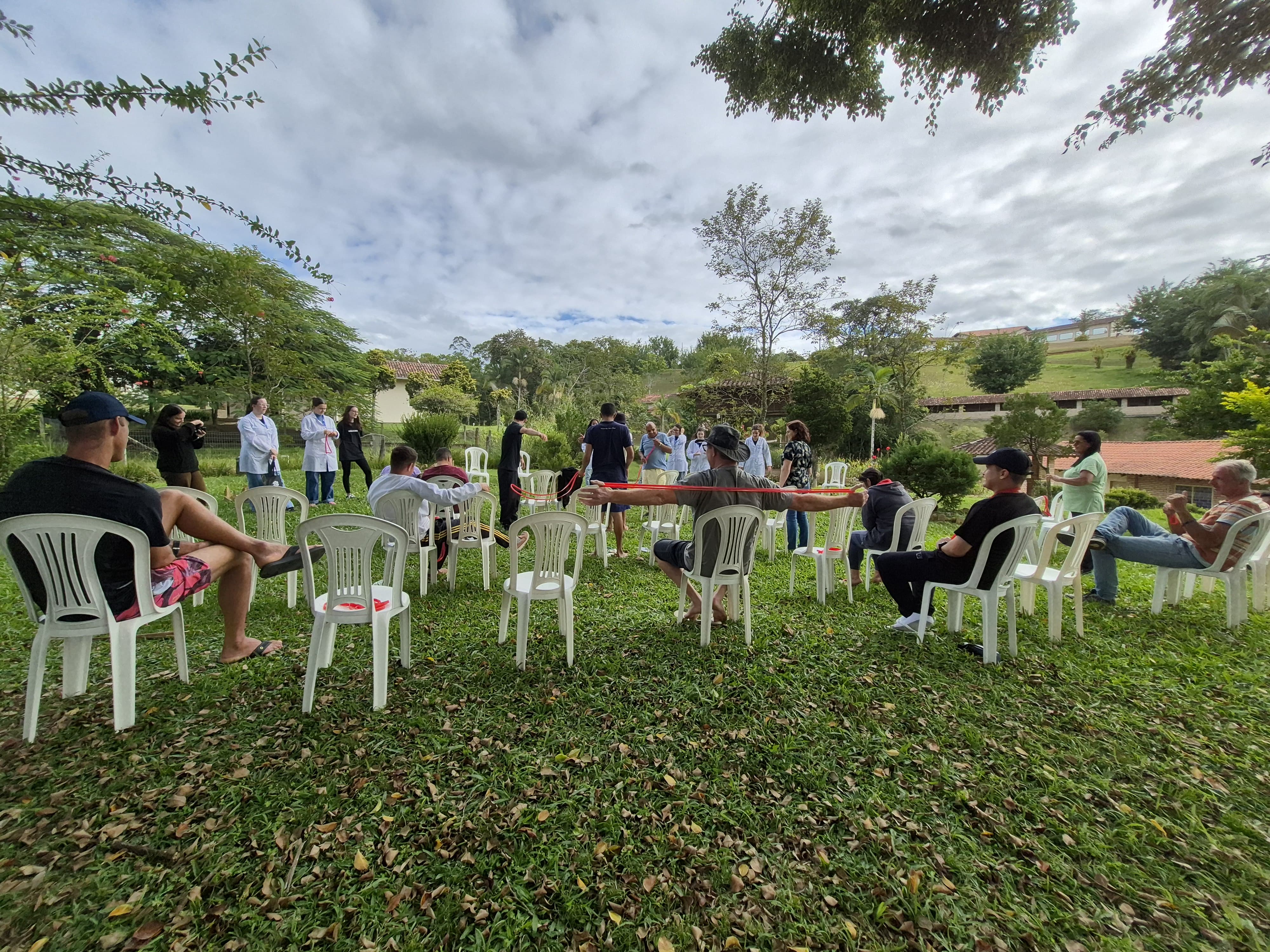 Durante o encontro, os acadêmicos abordaram os benefícios dos exercícios físicos para a saúde e o bem-estar, com foco na conscientização sobre o papel da atividade física como ferramenta complementar na recuperação de pessoas em situação de dependência química.