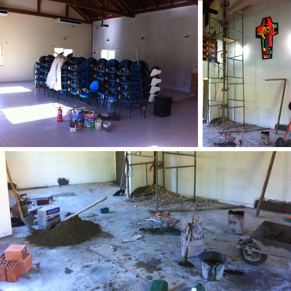 Pensando sempre na evangelização e na pregação do evangelho, nossa sala de palestras será restaurada para melhor acomodação dos peregrinos que vem à casa dos amigos de Jesus. A capela também sera reformada.