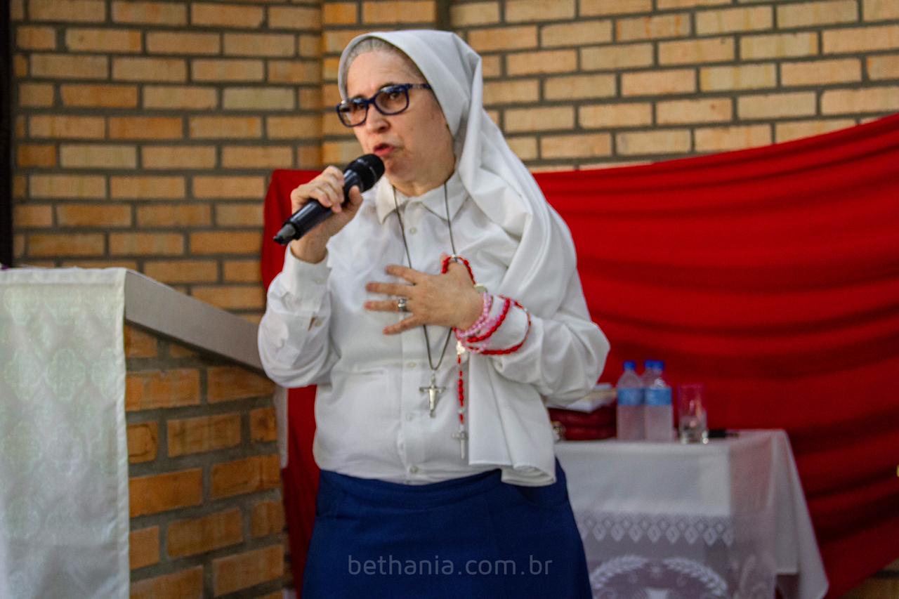 Na sequência teve início a primeira pregação da Irmã Zélia da Comunidade Copiosa Redenção, de Ponta Grossa (PR), que conduziu Kairós. Durante o evento, Irmã Zélia destacou a importância da fidelidade de rezar diariamente frente às dificuldades da vida e também das batalhas espirituais. Ela também compartilhou experiências pessoais e de sua missão, bem como, a relevância de se rezar o Terço e o Rosário e presença de Maria, mãe de Jesus na vida das pessoas.